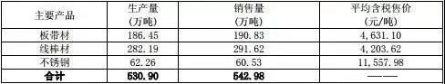 前三季度,公司不锈钢产品生产量为62.26万吨,销售量为60.53万吨,平均含税售价11557.98元/吨。